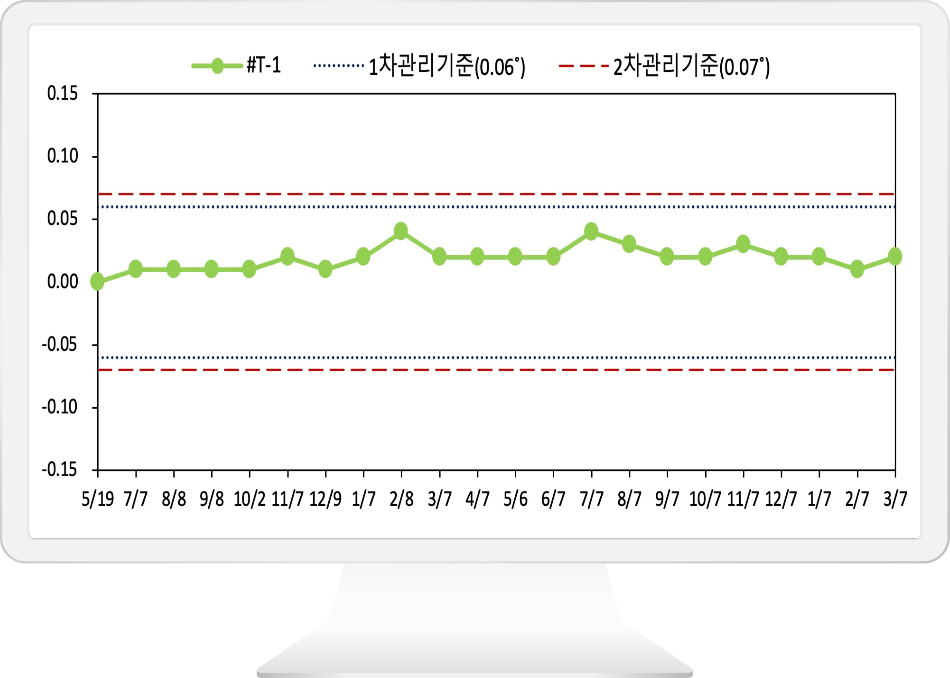 지정한 기간에 측정 및 관리하여 진행성을 파악하고 관련기준대비 평가함.